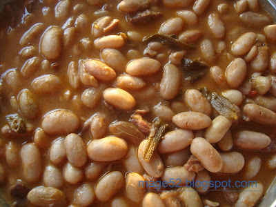 In una casseruola, con un po' di olio, rosolare la cipolla affettata con il prosciutto e la salvia, unire i fagioli, farli insaporire quindi aggiungere la passata di pomodoro ed il brodo.